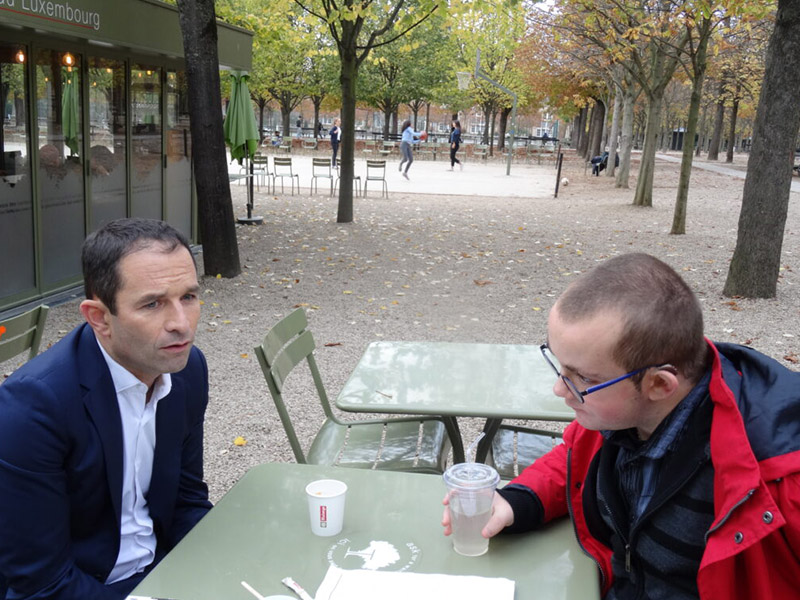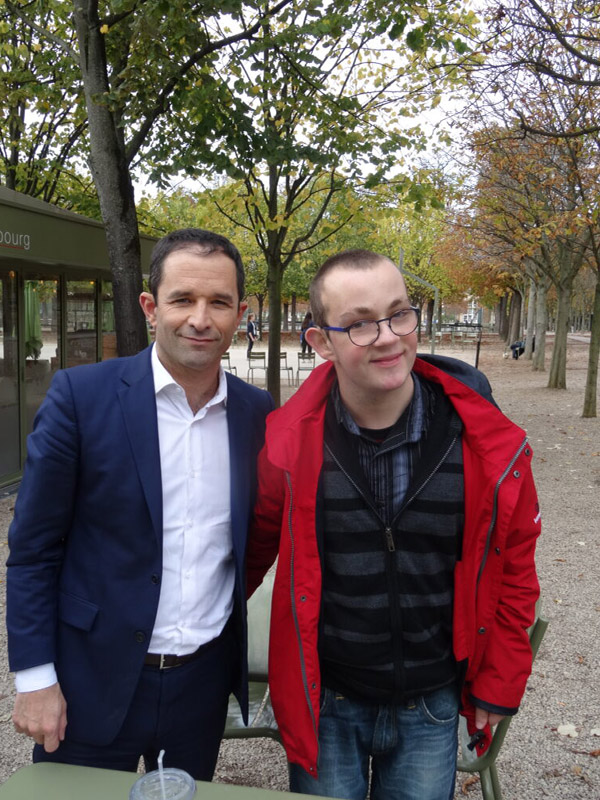 Le rêve d’Ewen était de rencontrer un homme politique. Il est lui même très attiré par ce milieu et très impliqué. Il s’intéresse à la politique et aux diverses émissions qui en parlent. Il a souhaité rencontrer un candidat à l’élection présidentielle de 2017 : Benoit HAMON. Son rêve s’est réalisé le 2 novembre 2017 dans les jardins du Parc du Luxembourg à Paris.